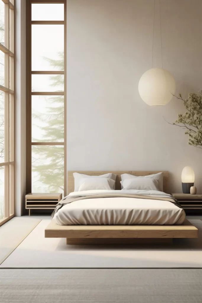 - Japandi – hybryda minimalizmu japońskiego i skandynawskiego. To królestwo niskich łóżek platformowych, bambusa i ceramiki w kolorach ziemi. Japandi uczy, że aranżacja jasnej sypialni powinna służyć kontemplacji i wyciszeniu.